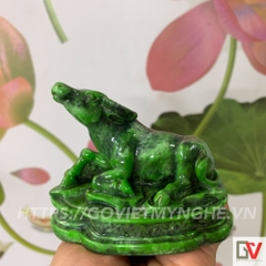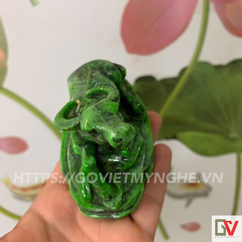 Tượng trâu đá trang trí phong thủy - Dài 10cm - Màu xanh lục bích