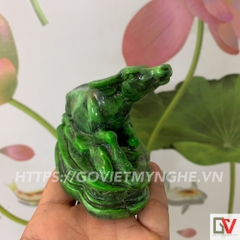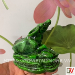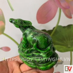 + 01 Tượng trâu đá trang trí phong thủy - Dài 10cm - Màu xanh lục bích
