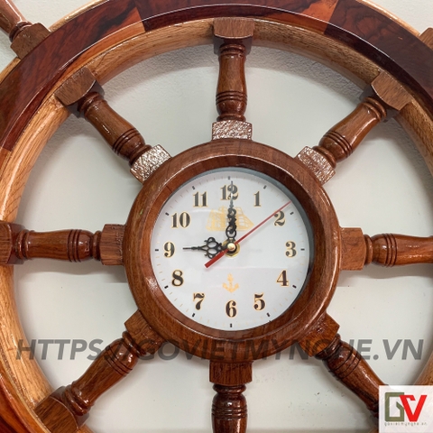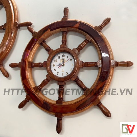 + 01 VVô Lăng Tàu Gỗ Trang Trí Ø50cm - Bánh lái tàu gỗ treo tường Ø50cm kèm đồng hồ - Gỗ căm xe
