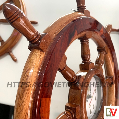 Vô Lăng Tàu Gỗ Trang Trí Ø50cm - Bánh lái tàu gỗ treo tường Ø50cm kèm đồng hồ - Gỗ căm xe