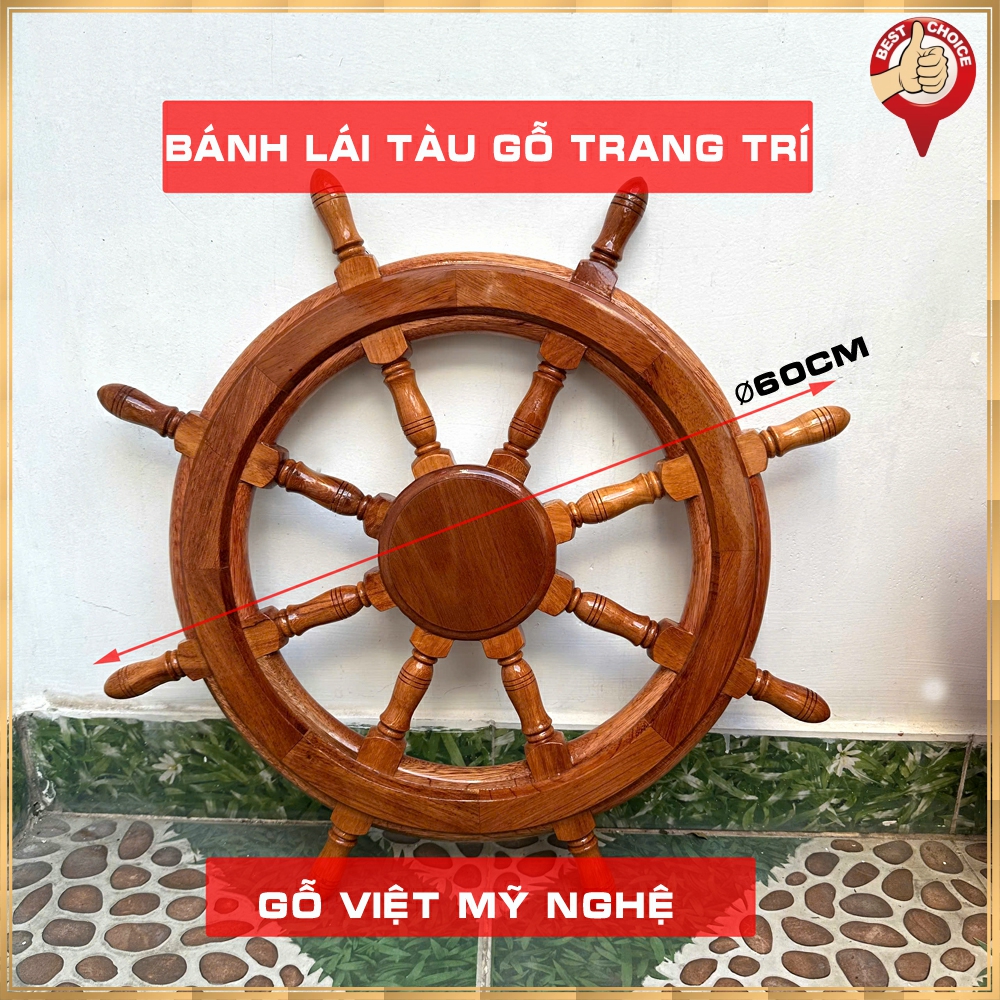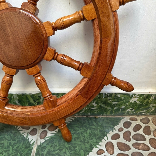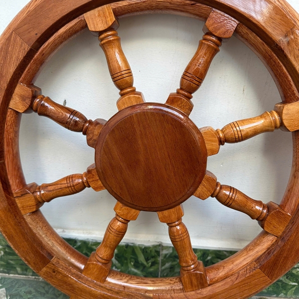 Vô Lăng Tàu Gỗ Trang Trí Ø60cm - Bánh lái tàu gỗ treo tường Ø60cm - Gỗ căm xe