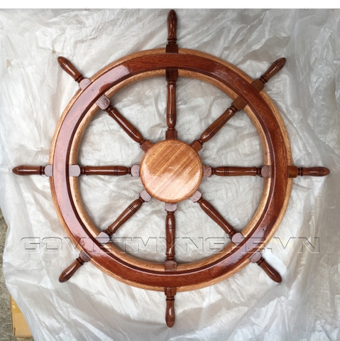 + 01 Vô Lăng Tàu Gỗ Trang Trí Ø80cm - Bánh lái tàu gỗ treo tường Ø80cm - Gỗ căm xe