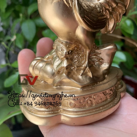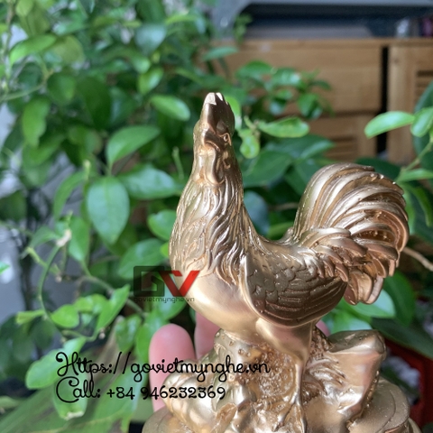 Tượng đá con gà trống trang trí phong thủy để bàn làm việc - Cao 12cm - Màu nhũ đồng