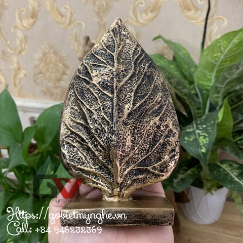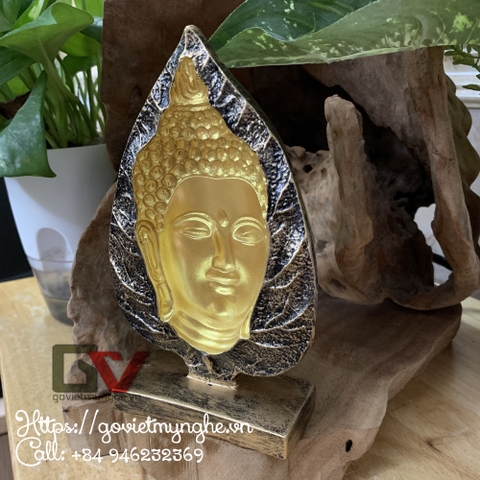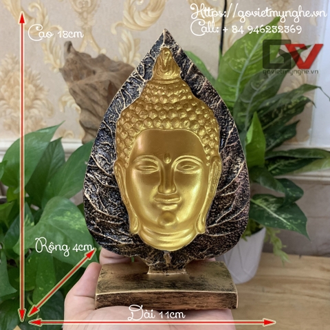 + 01 Tượng đá trang trí tượng Phật Thích Ca 3D Lá Bồ Đề - Chiều cao 18cm - Màu Nhũ Vàng