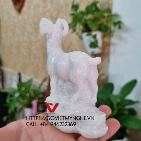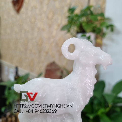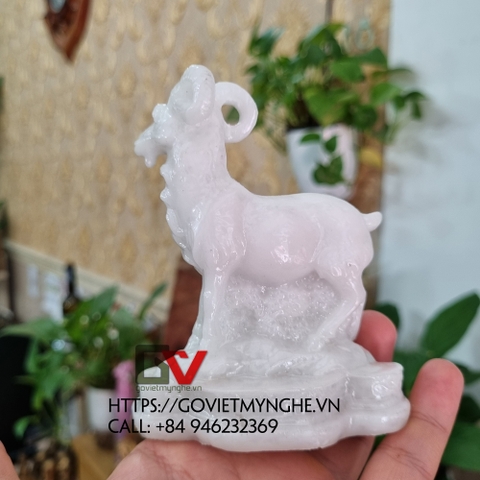 Tượng đá Dê phong thủy trang trí bàn làm việc mang may mắn tài lộc - Chiều cao 11cm - Màu trắng