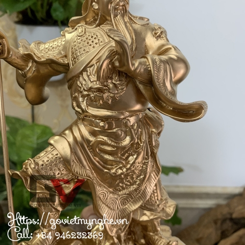 + Tượng đá Quan công được mô phỏng theo hình ảnh tướng đứng hùng dùng trên tay cẩm thanh đao, gương mặt cương nghị thể hiện khí khái anh hùng không thể dễ dàng khuất phục, không những dùng để trang trí mà còn góp phần tạo nên sự uy nghiêm, trang trọng cho căn phòng của bạn.