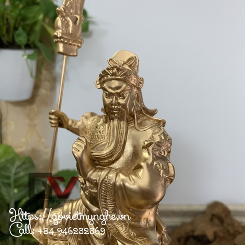 + 01 Tượng đá trang trí Quan Công phong thủy dáng Quan Công chống đao - Cao 23cm - Màu nhũ đồng