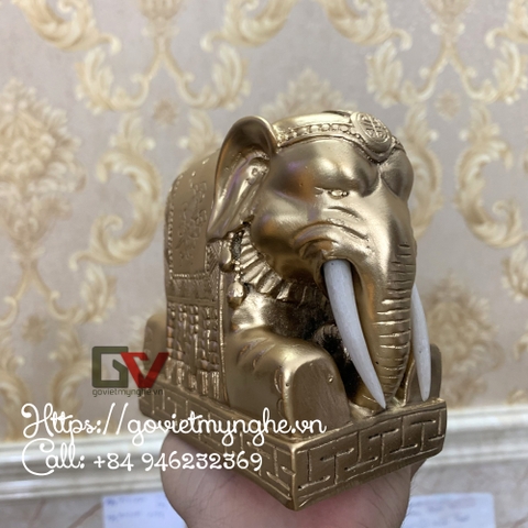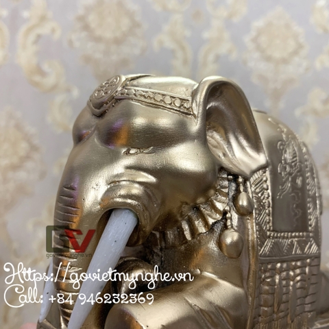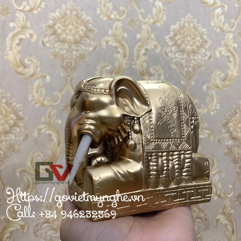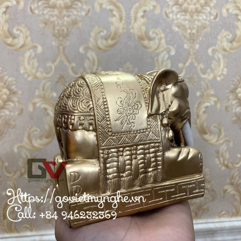 + 01 Tượng voi đá trang trí phong thủy dáng voi quỳ phục - Dài 12cm - Màu nhũ đồng