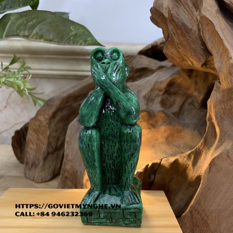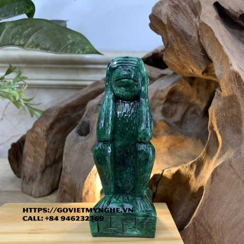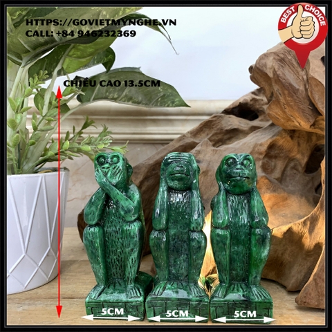 Tượng đá trang trí bộ ba khỉ tam không - Cỡ lớn Cao 13.5cm - Màu xanh lục bích