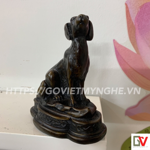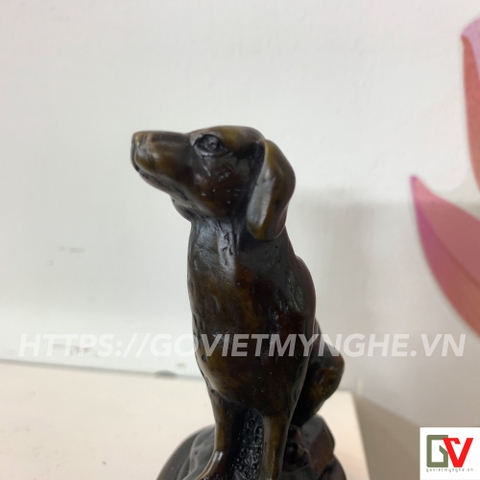 Tượng Đá Trang Trí Chó Phong Thủy - Tượng chó phong thủy để bàn làm việc - Màu Nâu Đen - Cao 10cm