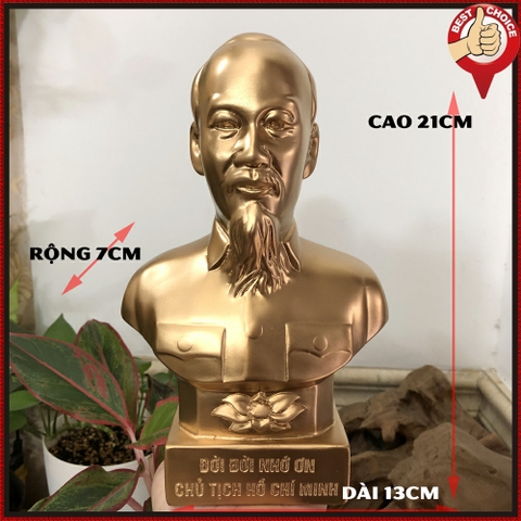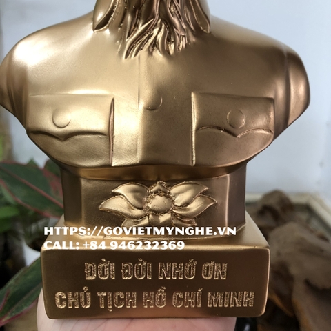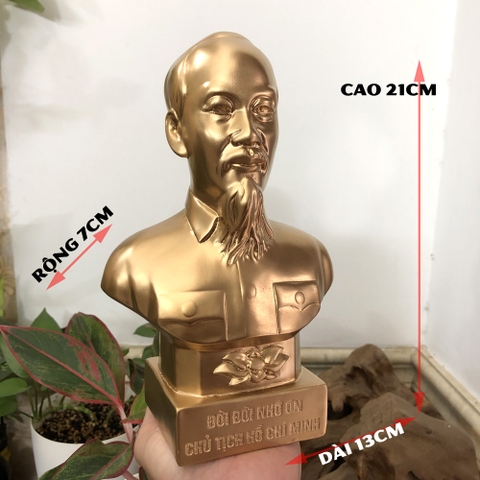 + 01 Tượng đá trang trí tượng bán thân Bác Hồ Chủ Tịch Hồ Chí Minh - Size Lớn Cao 21cm - Màu nhũ đồng