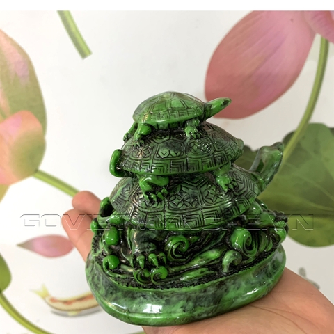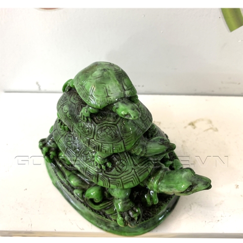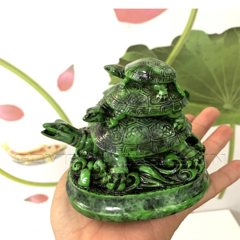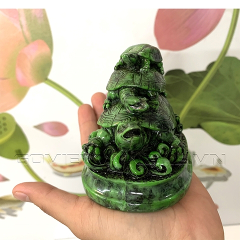 Tượng rùa trang trí phong thủy có chân đế - Chiều cao 10cm - Màu xanh lục bích