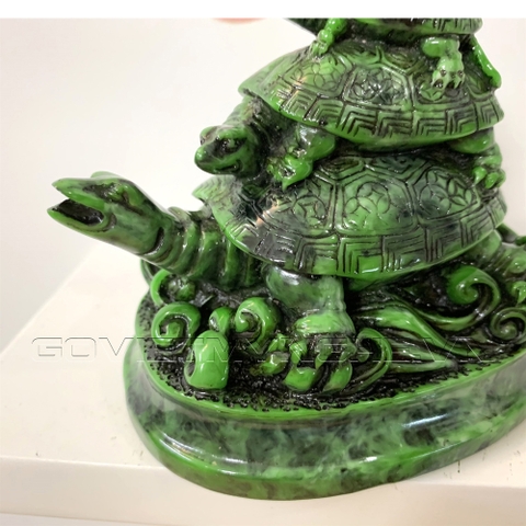 + 01 Tượng rùa trang trí phong thủy có chân đế - Chiều cao 10cm - Màu xanh lục bích