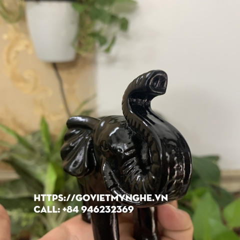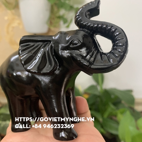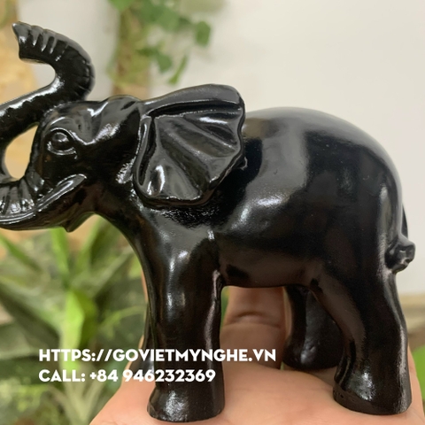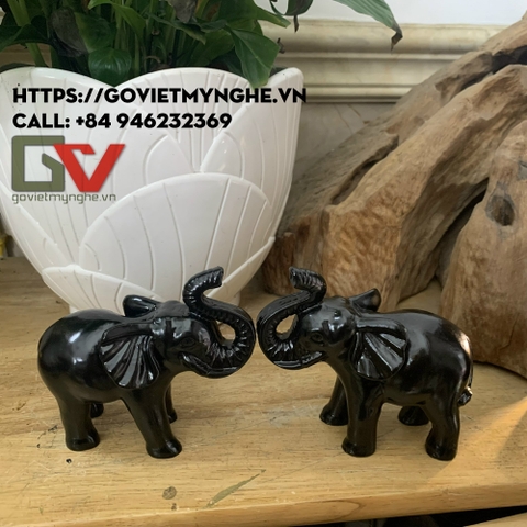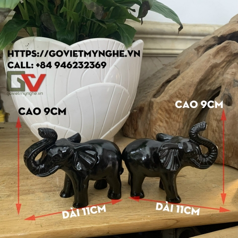 Cặp tượng voi đá trang trí phong thủy trấn trạch nhà cửa - Dài 11cm - Màu đen